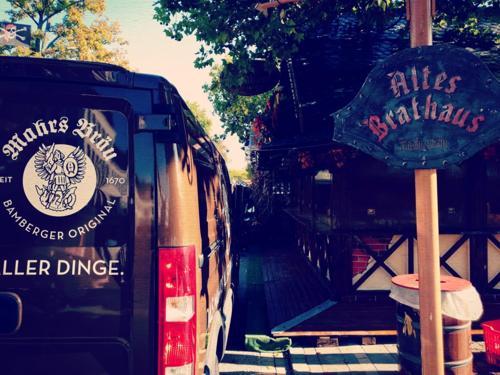 • Man nennt sie die „Königin der fränkischen Kirchweihen“ und sie gilt als eine der größten und schönsten Innenstadtkirchweihen in Bayern. Die Fürther Michaelis Kirchweih, die dieses Jahr – so schätzt man – zum 956. mal stattfindet. Mittendrin, sozusagen im Mittelpunkt, auf der Fürther Freiheit, befindet sich das Alte Brathaus. Legendär seit 18 Jahren und bekannt für feinste Steaks, leckere Brathausspieße und allerhand fränkische Schmankerln, zubereitet stets frisch am Schwenkgrill, für das Publikum frei einsehbar. In der „Brathausschänke“ wird der Durst der Kirchweihbesucher dieses Jahr zum zweiten Mal mit dem süffigen Bier aus der Wunderburg, dem Mahrs Bräu „U“, gelöscht. Dölles Altes Brathauses, Familienbetrieb in 9. Generation, setzt auf Kooperationen mit Partnern und Brauereien vor Ort. Und das aus Tradition. Denn die wird in der Familie genau so groß geschrieben wie in der Mahrs Bräu in Bamberg. Seit 240 Jahren dreht sich bei Familie Dölle alles um das Schaustellergewerbe. Die Mahrs Bräu heisst alle Gäste der Fürther Michaelis Kirchweih „Herzlich Willkommen“ und lädt alle ein, sich persönlich ein Bild von der „Königin der fränkischen Kirchweihen“ zu machen. Zum Beispiel bei einem kühlen „U“ im gemütlichen Biergarten des Alten Brathauses auf der Fürther Freiheit. Prost! Übrigens: Die Musik im Video stammt von Tom + Basti. Nächstes Jahr im Frühjahr und Winter wieder in der Mahrs Bräu zu Gast 🙂 www.tombundbasti.de