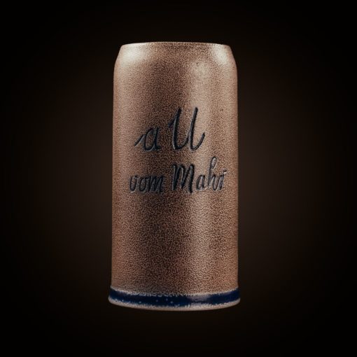 So naturbelassen wie der Inhalt, für den er gedacht ist: Der schlichte Mahrs Bräu Steinzeugkrug mit geritztem „a U vom Mahr“-Schriftzug, salzglasiert und geblaut – aus dem Hause „Girmscheid“ in der Eifel. Wie wir, arbeitet auch die Traditionstöpferei aus Liebe zur Tradition. So ist jeder Krug ein Unikat und wird wie vor 100 Jahren bei 1200 °C im offenen Feuer gebrannt. Handgemacht und spülmaschinenfest. Geeignet für alle Biere, 100 % geschmacksecht natürlich nur mit original Mahrs Bräu „a U. Fassungsvermögen: 0,5 Liter (handarbeit, nicht geeicht)