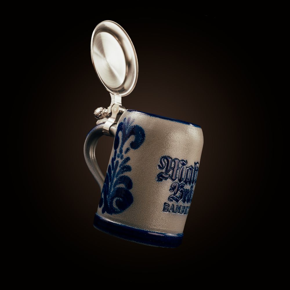Das Mahrs aller Dinge trinkt man am Besten aus einem ebenbürdigen Gefäss. Et voila: Der Mahrs Steinzeugkrug mit handgemaltem Dekor, Mahrs-Logo und massiv angegossenen Zinndeckel – salzglasiert & geblaut und in traditionellem Kobaltblau aus dem Hause „Girmscheid“ in der Eifel.