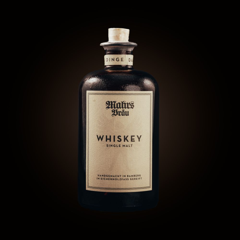 Wer glaubt in der Bamberger Wunderburg veredelt man „nur“ Biere, hat sich geirrt. Dieser edle Tropfen hat seine Geburtsstätte in unserer hauseigenen Brennerei. Der Mahrs Bräu Single Malt Whiskey wird drei Jahre im französischen Barique Fass gelagert und in verschiedenen Eichenholz-, Rum, Cognac oder Sherryfässern veredelt, bis er mit feiner Vanillenote und angenehm schmeichelndem, leichtem und rundem Abgang seine Anhänger begeistert. Er schmeckt wirklich so schön, wie er aussieht. 0,5 Liter