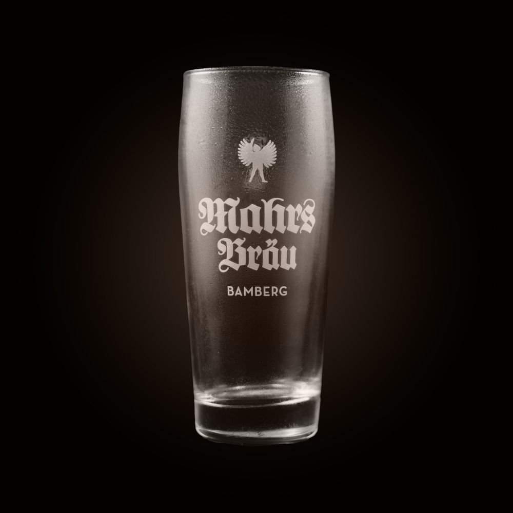 Der Neue Mahrs Bräu Willybecher (Bierglas) mit 0,5l Fassungsvermögen.