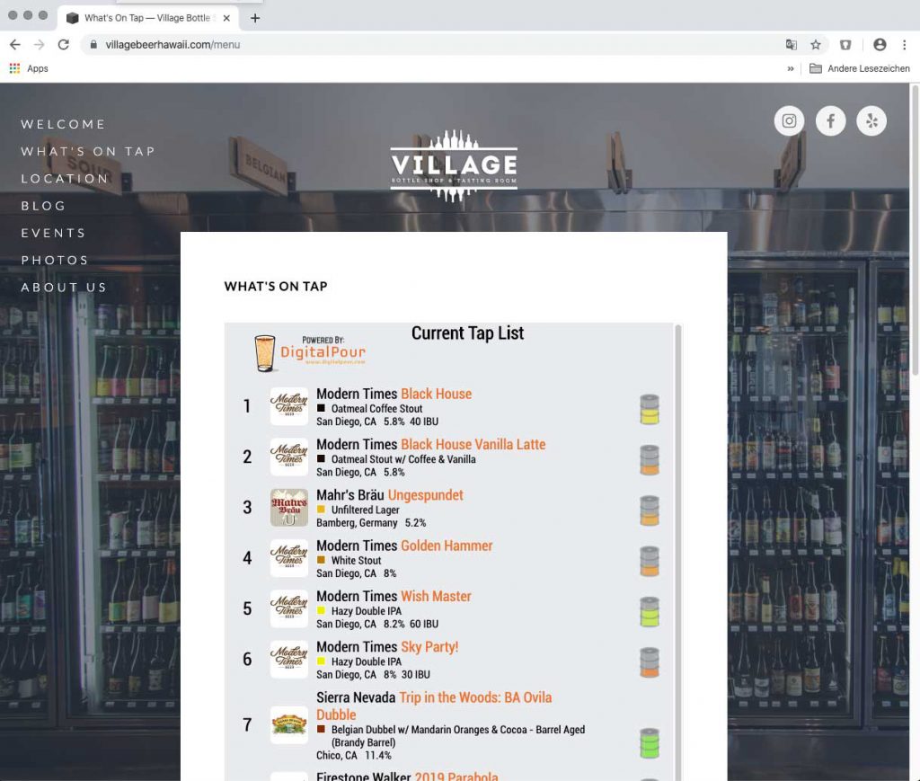 • Village Bottle Shop & Tasting Room is the first dedicated craft beer bottle shop and beer café in the state of Hawaii. This beer café and tasting room has a laid back and relaxed atmosphere. You can hang with friends or get some work done, all while enjoying some of the world’s most amazing beers. There are over 500 carefully curated beers, in bottles and cans, that can be drank on-site or purchased for takeaway, as well as 18 constantly alternating beers on tap and 8 wines on draft. You are sure to find something to fit your taste and/or occasion. New on tap: Mahr’s Bräu “U” from Bamberg’s Wunderburg. 🙃👍🏻